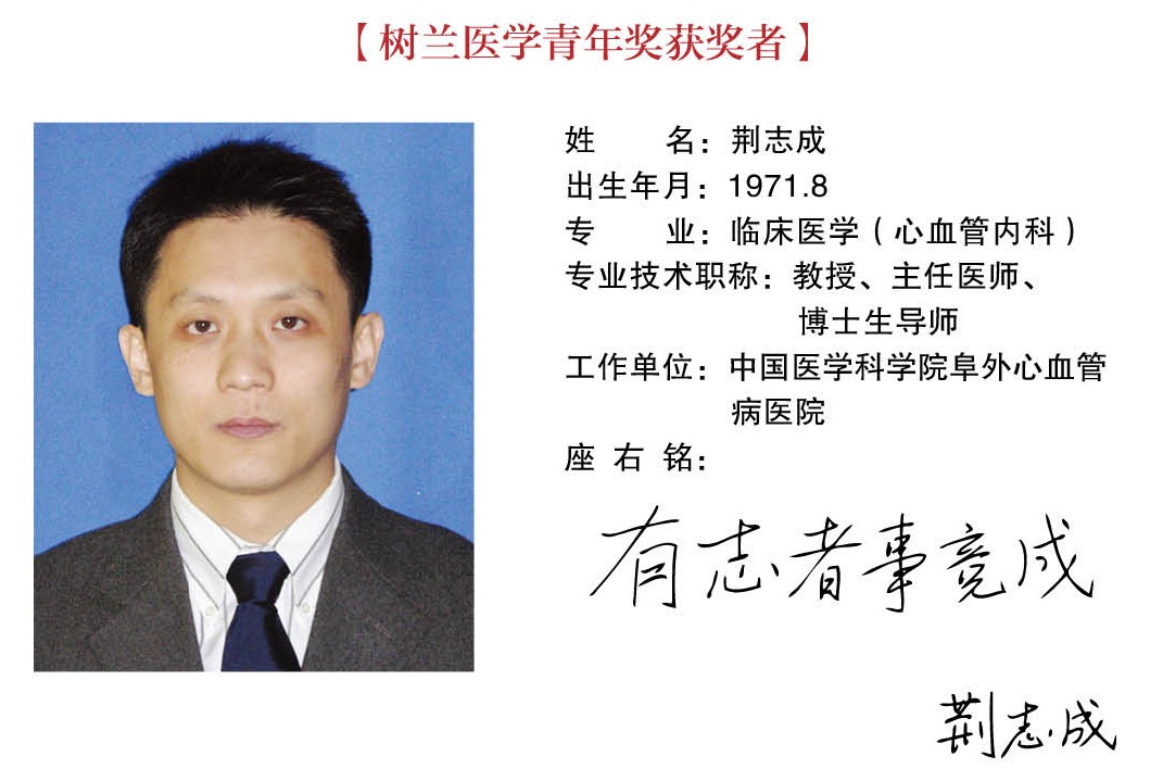 荆志成,心血管病学专家,1971年8月生于安徽。1998年于北京协和医学院获博士学位。2014年获得国家杰出青年科学基金并当选为教育部“长江学者特聘教授”,科技北京“百名领军人才”。现任中国医学科学院阜外医院心内科副主任,兼任同济大学附属上海市肺科医院教授。担任中华医学杂志(英文版)副总编辑以及European Respiratory Journal等杂志编委。他已主持30余项省部级以上科研项目,国际上首次证实:伐地那非和法舒地尔可治疗肺高压;吸入伊洛前列素可行急性肺血管扩张试验。率先完成中国肺动脉高压遗传流行病学调查;率先在国内开展波生坦等药物治疗肺动脉高压的临床研究,使我国肺高压患者五年生存率提高一倍以上;上述成果都被最新全球肺高压诊治指南所引用,为我国肺血管病学做出突出贡献。已发表论文221篇,曾获上海市科技进步奖,欧洲心脏病学年会青年科学家奖等多项奖项。