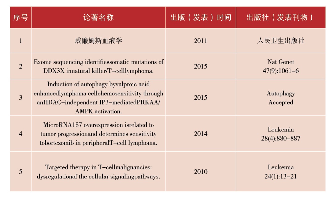 通过多年工作积累,我以第一完成人获教育部自然科学奖一等奖和华夏医学科技奖一等奖,建立完善了一支淋巴瘤临床诊治和科研攻关密切结合的临床科研综合团队,开辟了学科的新成长点,成为该疾病临床治疗和转化研究的带头人。