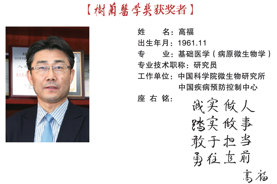 高福研究员是我国的国际知名病原微生物与免疫学家。主要从事病原微生物跨宿主传播、感染机制与宿主细胞免疫研究以及公共卫生政策与全球健康策略研究。2003年入选中国科学院“百人计划”,2005年获得国家杰出青年基金资助。曾先后主持多项国家重大科研项目,“973”项目首席科学家,国家自然科学基金委员会“创新研究群体”项目负责人。在SCI国际刊物上发表论文400余篇(包括Cell, Nature, Science, Lancet, NEJM, NSMB, PNAS, PLoS Pathogens, Immunity等)。曾先后获得国家科技进步一等奖和国家科技进步二等奖、中国科学院杰出科技成就奖、谈家桢生命科学创新奖和成就奖、第19届日本日经亚洲奖、何梁何利基金科学与技术进步奖、吴杨奖、日本外务大臣表彰奖等多项奖项。