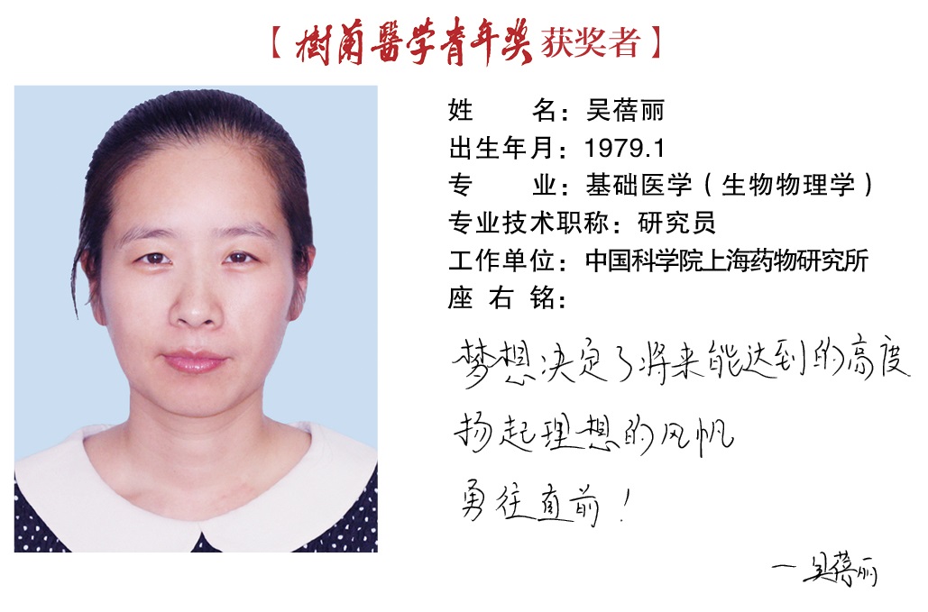 吴蓓丽(1979.01.28 — ),生于河南省南召市。2006年毕业于清华大学生物物理专业,现任中国科学院上海药物研究所研究员,主要从事G蛋白偶联受体(GPCR)的结构药理学研究。她建立了GPCR结构生物学研究技术平台,并在短期内成功解析了多种GPCR的晶体结构,实现了我国GPCR结构测定零的突破,为相关功能研究和药物研发提供了重要的结构基础。发表SCI论文20余篇,影响因子总和360。现任上海市生物物理学会副理事长、中国生物物理学会分子生物物理分会理事等。