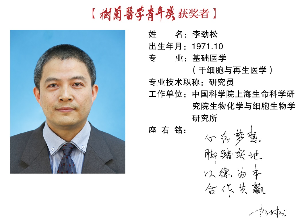 李劲松博士自1997年开始从事体细胞重编程的研究,博士期间获得国内第一批体细胞克隆牛,因此获国家自然科学二等奖。博士后期间系统探讨了不同供体细胞对克隆胚胎发育的影响,获 USDA-CSREES-National Research Initiative Merit Awards。2007年回国后继续从事体细胞重编程相关的研究,取得了一系列原创成果。在国际重要学术刊物上发表论文34篇。申请发明专利1项,授权1项。2012年获国家杰出青年科学基金;2013年入选科技部“中青年科技创新领军人才”;2015年入选百千万人才工程;2016年入选中组部“万人计划“领军人才。主要科研成果如下: