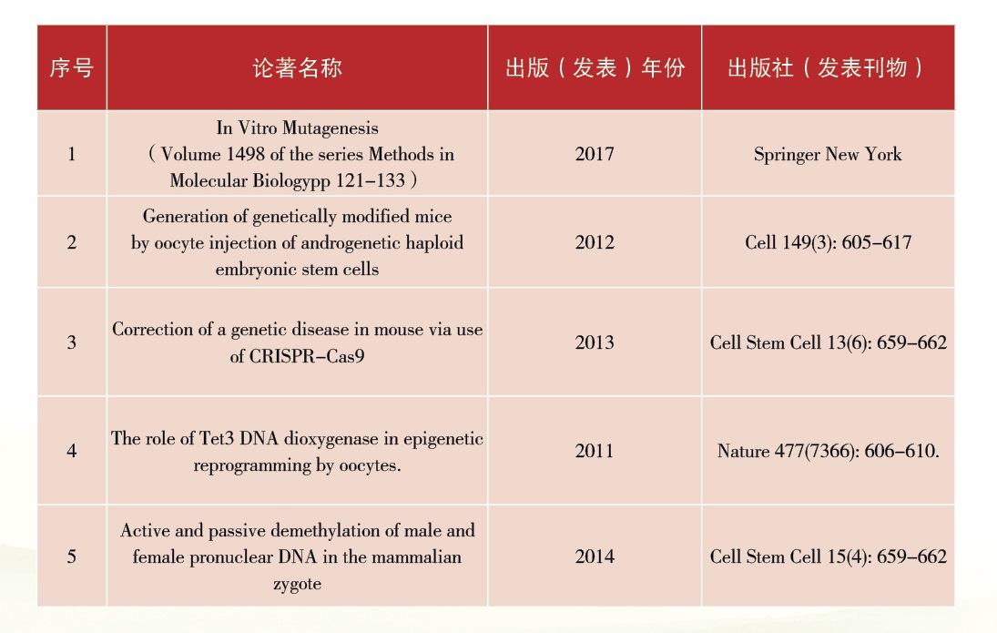 建立了只携带精子遗传物质的小鼠孤雄单倍体胚胎干细胞,并证明其能代替精子使用产生健康的半克隆小鼠,即半克隆技术。证明单倍体胚胎干细胞在去除H19-DMR和IG-DMR后,能够高效用于半克隆小鼠的获得。建立了来着食蟹猴和人的孤雌单倍体胚胎干细胞。