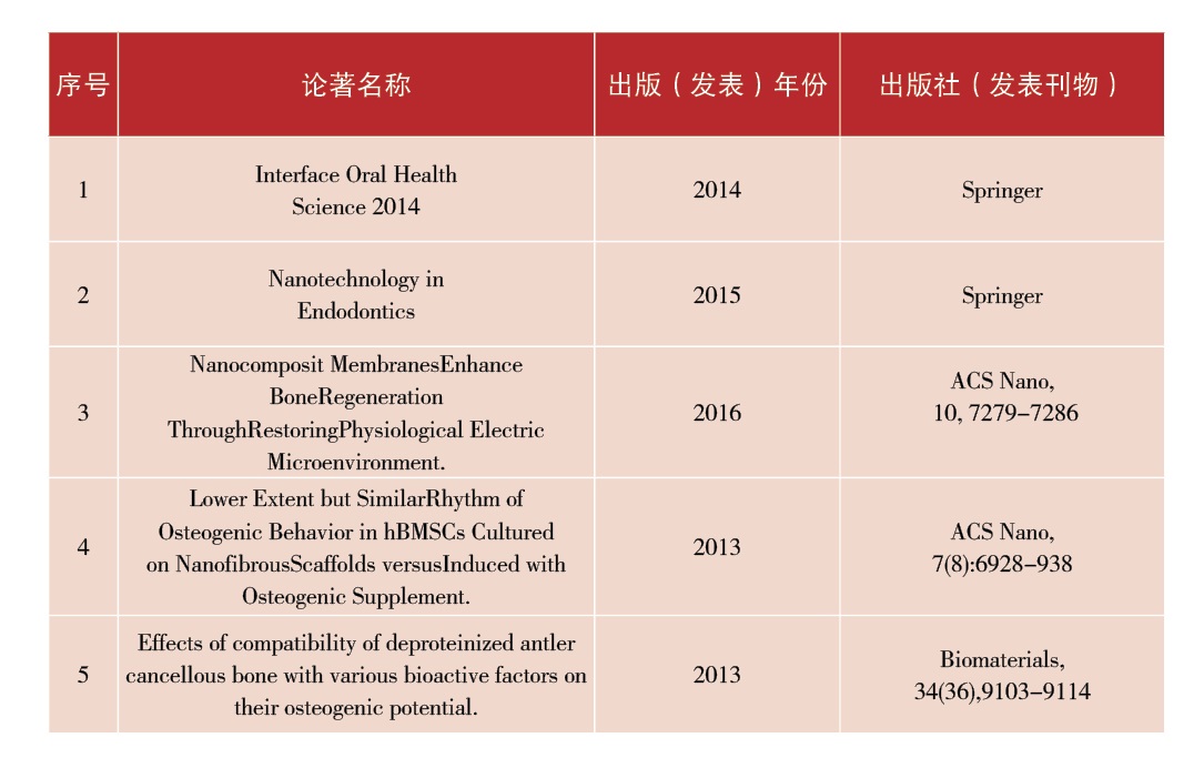 长期围绕牙周组织和牙齿硬组织缺损治疗用材料的生物和力学相容这一关键科学问题开展研究,设计制备了系列口腔生物复合材料产品,用于解决临床牙周组织再生修复和牙齿硬组织替代修复所面对的难题。相关研究在ACS nano,Biomaterials,Biomacromolecular,Dental materials等期刊上共发表论文182篇,其中SCI收录65篇。现将从以下三个方面详细阐述取得的主要科研成绩: