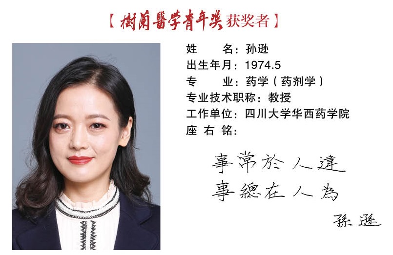 孙逊教授是四川大学华西药学院的药剂学专家,她长期致力于核酸和疫苗的高效递释系统的研究,利用所具备的交叉学术背景,坚持药剂学与生物医学的融合,取得了一些令人瞩目的研究成果。针对生物大分子药物现有的递送系统过于复杂和成药性低的现状,力求用简单的载体设计,解决递送过程中复杂甚至矛盾的科学问题。2014年荣获国家自然基金优秀青年基金,2017年入选国家药典委员并担任药剂学顶级期刊J. Controlled Release(IF 7.786)编委。她还担任四川省药学会副秘书长,四川省药学会常务理事,四川省药学会生物药物专业副主任委员。主要学术成就和贡献如下: