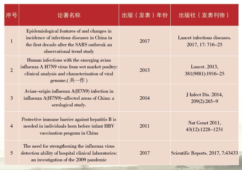 回首十余年的科研道路,感恩李兰娟院士和郑树森院士为我提供了优越的科研平台和他们给我的悉心指导!他们渊博的学术、创新的思维、严谨的科学态度孕育着我不断成长,尤其是李院士对传染病防治事业的满腔热忱,高瞻远瞩、敢为天下之先的精神永远激励着我不断前行。在李院士指导和支持下,通过传染病重大专项及国家自然科学基金的课题的实践,我初步建立了两个主要研究方向,第一个是重大传染病大数据分析模型研究,第二个是新发突发传染病流行病学防控研究,两个方向均获得了国家自然科学基金等国家课题资助,在未来研究中,我将围绕这两个研究方向,进一步开展禽流感病毒突变规律研究和传染病预警预测模型研究,并加强学科交叉研究、加强国家间的学术交流,不断拓宽传染病防治研究新视野。