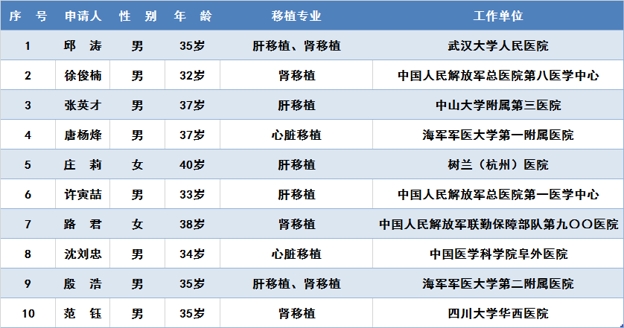 2019树兰卓越工程—器官移植青年人才海外研修支持计划获奖者名单