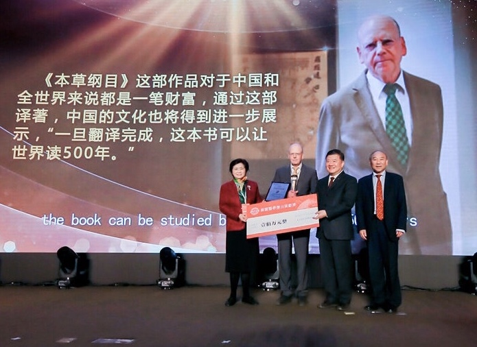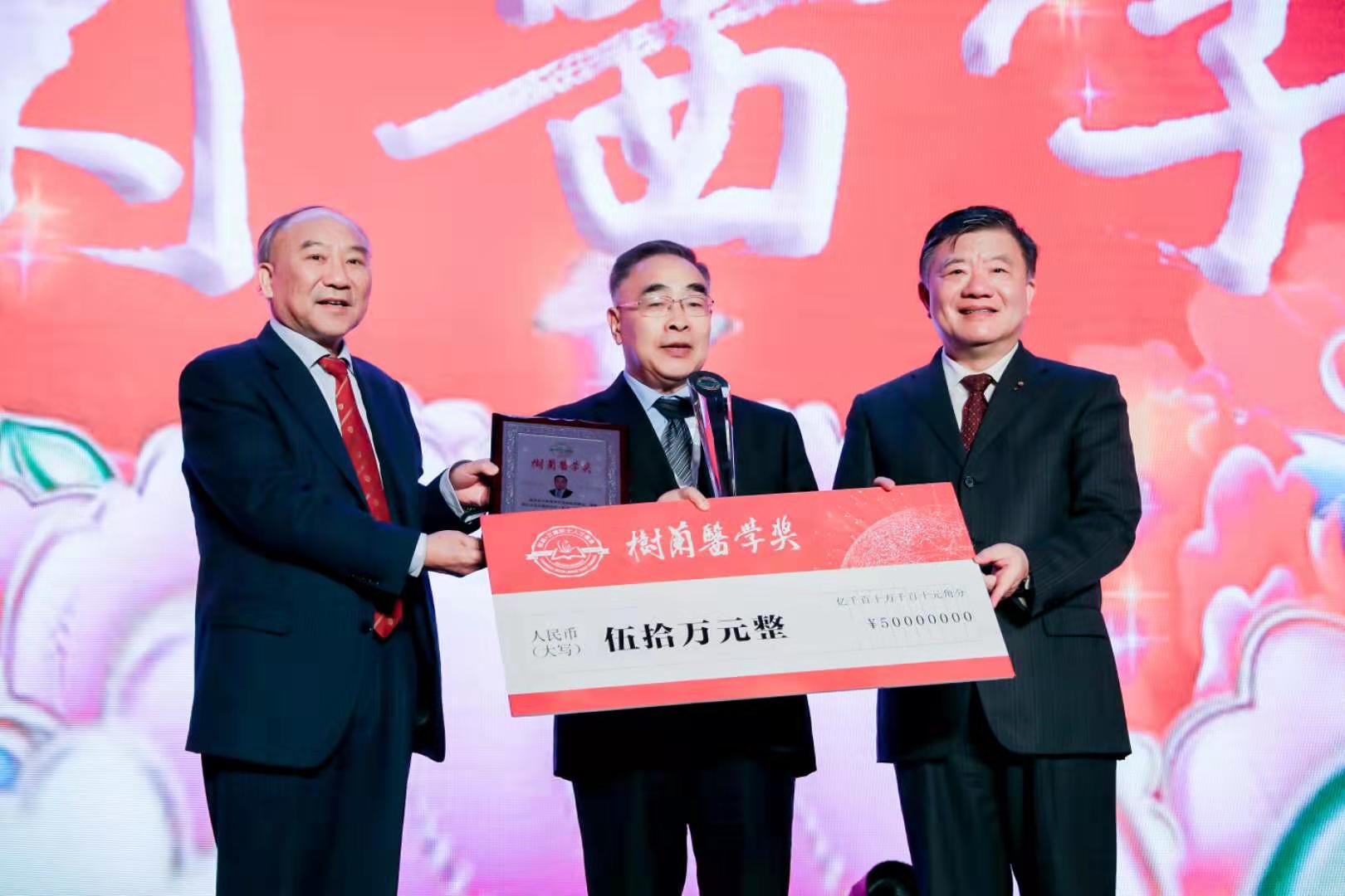 陈竺院士、郑树森院士为张伯礼院士颁奖