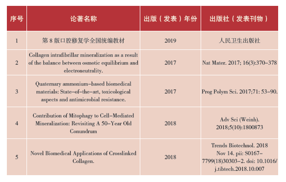 长期从事一线教学工作,参编口腔修复学全国统编教材。指导研究生发表SCI论文20篇,单篇IF最高25.77,2人获陕西省优博,7人在国际国内会议获奖。形成了拥有固定成员10人的科研团队,其中陕西省科技新星3人,培养和凝聚了一批具有较强国际竞争力的高素质创新人才。