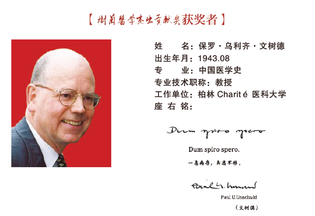 保罗•乌利齐•文树德(Paul Ulrich Unschuld),德国人,著名的医史学家、翻译家,主要研究方向为中国医学史和欧洲医学史,尤其擅长医学思想史、伦理史研究,研究中医40余年。