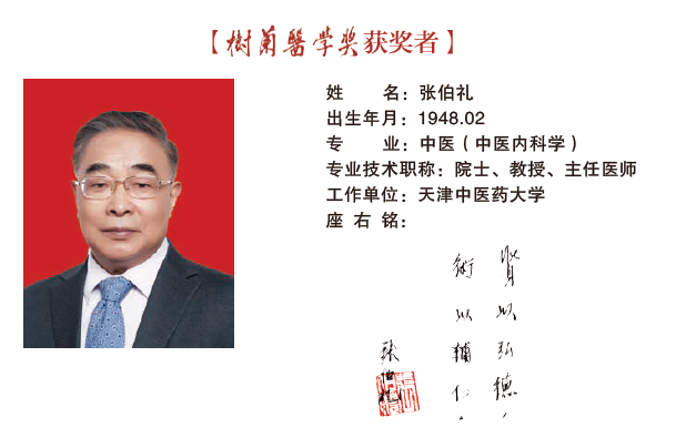 张伯礼(1948.02.26 — ),全国名中医,天津人。1982年毕业于天津中医学院中医内科学专业硕士研究生。2005年当选中国工程院院士。现任天津中医药大学校长,中国中医科学院名誉院长。兼任中国工程院医药卫生学部主任、第十三届全国人大代表、国家“重大新药创制”专项技术副总师、教育部医学教育专家委员会副主任委员、世界中医药学会联合会副主席等职务,2010-2018年曾任中国中医科学院院长职务。从事心脑血管疾病防治和中医药现代化研究40余年,将中医药原创思维与现代科技结合,用现代科学技术阐释中医药的科学内涵,取得了系列突出成果,提高了临床疗效,促进了中医药学术进步,引领了中医药行业发展方向。承担并完成国家及省部级科研项目40余项,获包括国家科技进步一等奖在内的国家奖7项,省部级科技进步一等奖10项,授权专利20余项,发表SCI论文80余篇,主编专著20余部。