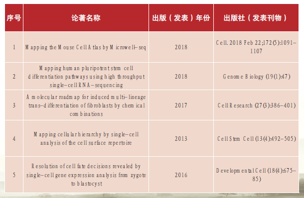 一、建立高通量单细胞qPCR技术的基本实验方法以及数据分析手段,推动了单细胞水平系统生物学的发展。郭国骥博士首次建立了高通量单细胞qPCR的实验方法及相关生物信息学分析流程,并利用这套技术研究了哺乳动物早期胚胎发育、造血干细胞分化及小分子诱导体细胞转分化的细胞命运决定过程。相关工作分别发表在权威期刊Developmental Cell、Cell Stem Cell和Cell Research上。