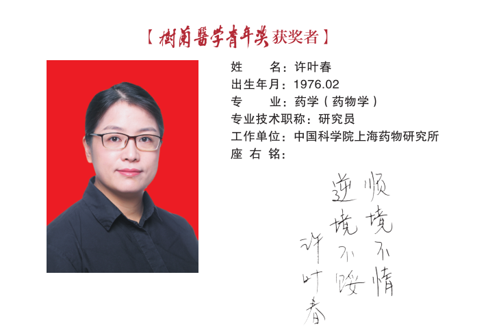 许叶春研究员带领其团队建立了以精准表征药物与靶标结合为特色的药物设计新策略与技术体系,在小分子药物设计与发现研究领域取得了重要成果。2005年荣获中国药学会-“施维雅”青年药物化学奖,2006年入选全国百篇优秀博士毕业论文,2009年入选中科院“百人计划”,并荣获中科院-诺和诺德长城教授奖,2010年入选上海市“浦江人才计划”,2015年获得国家优秀青年科学基金,2020年入选国家百千万人才工程,被授予“有突出贡献中青年专家”荣誉称号。目前担任中科院“受体结构与功能”重点实验室副主任。主要研究成果:(1)针对PDEs等炎症相关的重要靶标,高效获得了多个全新先导化合物及临床前、临床候选新药。参与研发的PDE5抑制剂进入治疗肺动脉高压的II期临床研究,主持研发的抗银屑病PDE4抑制剂进入系统临床前评价研究,即将申报临床批件;(2)针对SARS-CoV-2 3CL蛋白酶和RNA聚合酶等抗病毒关键靶标开展先导化合物高效发现研究,一个3CL蛋白酶抑制剂作为1.1类新药候选已申报临床批件并实现成果转化,率先揭示了黄芩素等天然产物抗 SARS-CoV-2的分子机制;(3)发表SCI论文97篇,代表性论文包括Science(2篇)、Nature、Nat. Commun.、Proc. Natl. Acad. Sci.、J. Am. Chem. Soc.(2篇)和J. Med. Chem.(11篇),在PDB中发表晶体结构100多个,申请专利26项。