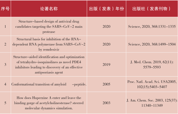 我国在以习近平同志为核心的党中央领导下,坚定而迅速地打赢了新冠疫情的“武汉保卫战”,进而取得了全国疫情防控的胜利。然而截至目前,新冠病毒仍然在中国之外的全球其他地区肆虐。作为抗新冠病毒药物研发队伍中的一员,深感责任重大,唯有不忘“找药”初心,顺境不惰,逆境不馁,砥砺前行。感谢树兰医学青年奖对我工作的肯定和激励,借此心路历程回顾之际,尤其感谢蒋华良院士和饶子和院士带领我进入抗病毒药物研发领域,感谢所有合作者的鼎力支持和同舟共济。在今后的工作中,在前期获得多类先导化合物的基础上,重点开发具有临床研究潜力的3CLpro和PLpro的新型小分子抑制剂;同时针对病毒感染过程中的潜在新靶标,开展新结构解析、新配体发现和新机制阐明等研究,为深入理解这些关键蛋白的生理病理功能机制提供工具分子,为重大感染性疾病的新药研发储备具有自主知识产权的先导化合物及候选药物。
