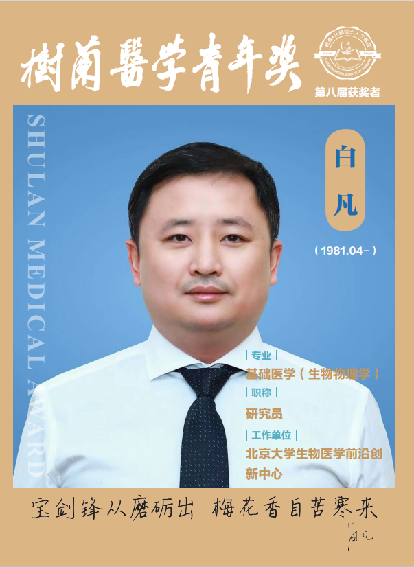 白凡,1981 年 4 月出生于湖北省武汉市,2003 年本科毕业于北京大学物理系,2008 年于英国牛津大学获生物物理学博士。现任北京大学生物医学前沿创新中心、生命科学学院、第一医院研究员。白凡实验室使用单分子荧光成像、单细胞测序、生物信息分析等多学科交叉技术方法研究临床复杂疾病致病机制。已在Science(2 篇),Nature,Cell(2 篇),Cancer Cell,Nature Immunology,Molecular Cell(2 篇)等著名学术期刊发表论文 100 余篇,曾获得“青年海外高层次人才”计划,基金委优秀青年基金(2017),杰出青年基金(2021)。以课题负责人多次获得科技部 863 计划、“精准医学”重点研发计划资助,获国家科技进步二等奖,中国细胞生物学会 - 青年科学家奖,Cell 杂志社 2019 年中国年度论文,2019 年中国临床医学十大进展。
