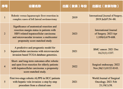 本着“敢为天下先,患者最优先”的精神,我主刀完成了国内首例机器人儿童右半肝切除术等一系列机器人肝脏手术;对比分析了国内外最大宗肝脏巨大血管瘤、大肝癌等切除方法,验证了微创手术的安全性。参与制定了国际专家共识International experts consensus guidelines on robotic liverresection 2023版和2018版两部、《机器人肝胆胰手术操作指南》和《结直肠癌肝转移腹腔镜、机器人同期联合切除技术指南》,在机器人微创手术的新方法、新思路和新困难等方面与多层次医疗中心深入推演论证,为全国多家单位开展该领域的手术提供了指导和依据。