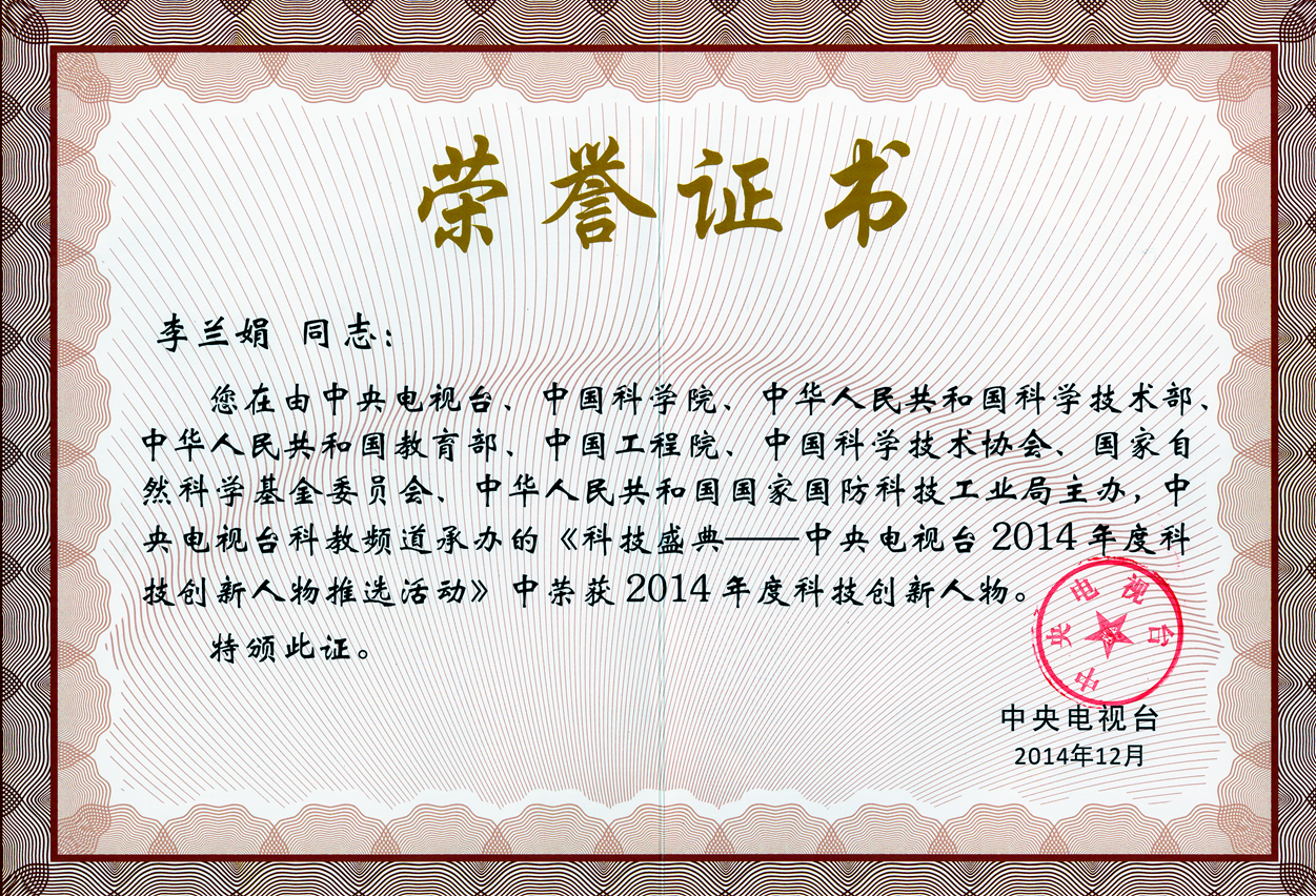 在硕果累累的岁末,树兰基金再传喜讯,经过多轮推选,树兰基金理事长、浙大一院传染病诊治国家重点实验室主任、感染性疾病诊治协同创新中心主任李兰娟院士荣获中央电视台2014年度科技创新人物。12月12日,中央电视台在总部大楼第一演播厅举行2014年度科技创新人物颁奖典礼。“科技盛典”作为央视的名牌节目,在每年岁末为广大观众奉献一场聚集了当今中国顶级科学家的科学盛宴,不仅展现了科技工作者引领我国当今和未来科技发展的重大创新成果,更弘扬了在科技领域几十年如一日默默坚守、严谨求实、攻坚克难、勇攀高峰的科学精神。