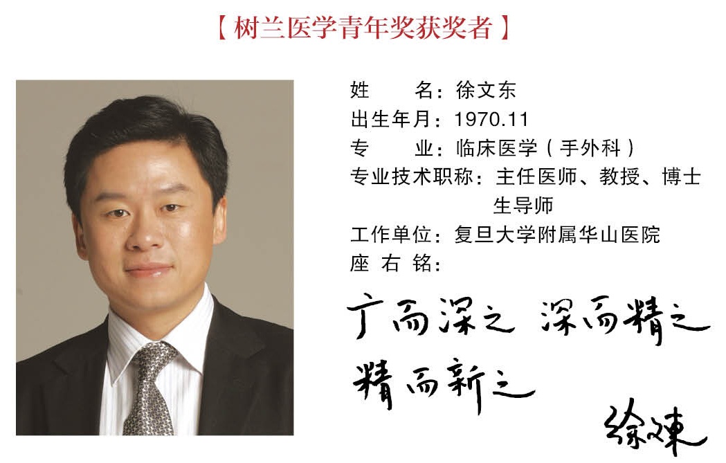 徐文东(1970.11- ),手外科、显微外科专家。生于上海市。2000年博士毕业于复旦大学外科学系。现任复旦大学附属华山医院副院长、手外科副主任、中华医学会手外科学分会候任主委、周围神经学组组长、全国青联委员、上海青联常委。国际首次报道“全长膈神经移位术治疗臂丛根性撕脱伤”,首次提出“通过健侧神经移位促使健存大脑半球控制中枢损伤后瘫痪上肢”的新策略,为脑卒中、脑外伤和脑瘫后瘫痪肢体功能恢复提供了新方法。以第一作者通讯作者发表SCI论文24篇。参编2本国际专著。获专利授权4项。主持国家863计划1项、国家自然科学基金4项、教育部及上海市项目5项。获国家科技进步二等奖、教育部科技进步一、二等奖、上海市科技进步一、二等奖等(第三完成人)。